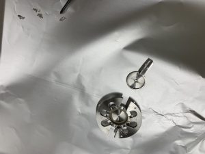 カーテンプレートを外すと、オリフィスが姿を現します。斜め、左上と右下にあるレバーを押すと、真空開放されていればオリフィスプレートが外れます。